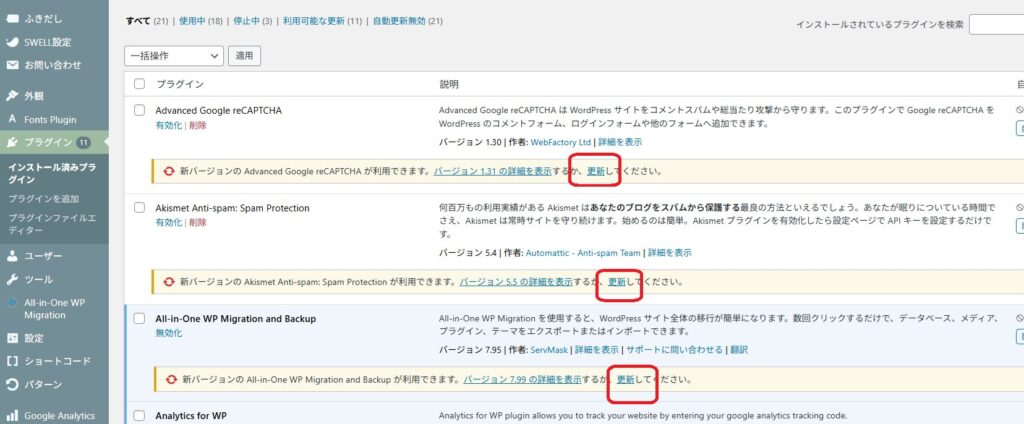 更新を怠ると、古いバージョンのまま脆弱性を抱え続けることになり、サイトが攻撃されるリスクが高まります。